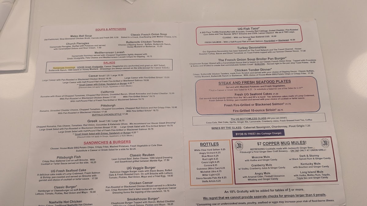 Welcome to Union Grill Oakland, a culinary gem nestled at 413 S Craig St in Pittsburgh. This inviting eatery perfectly blends local charm with delicious fare, attracting both residents and visitors alike. The menu boasts a delightful variety of offerings, highlighted by the famed Turkey Devonshire and the mouthwatering French Onion Broiler Pan Burger. Guests rave about the exceptional quality of the food, especially the crispy fries and hearty sandwiches that are highly recommended by patrons like Paul and Finn.